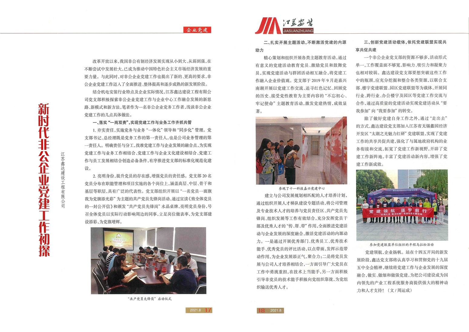 支部動態 | 我司黨建工作經驗在《江蘇安裝》期刊發表