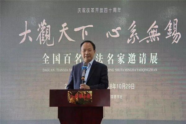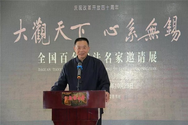 2018年10月21日,由中國書法報、《大觀書畫家》雜志、無錫市委宣傳部、無錫市文學(xué)藝術(shù)界聯(lián)合會、無錫市書法家協(xié)會主辦,無錫中糖、無錫市榮巷書社承辦,上海香雪海國際貿(mào)易有限公司、江蘇鑫達建設(shè)工程有限公司贊助的“大觀天下 心系無錫——全國百名書法名家邀請展”在無錫隆重開幕。
